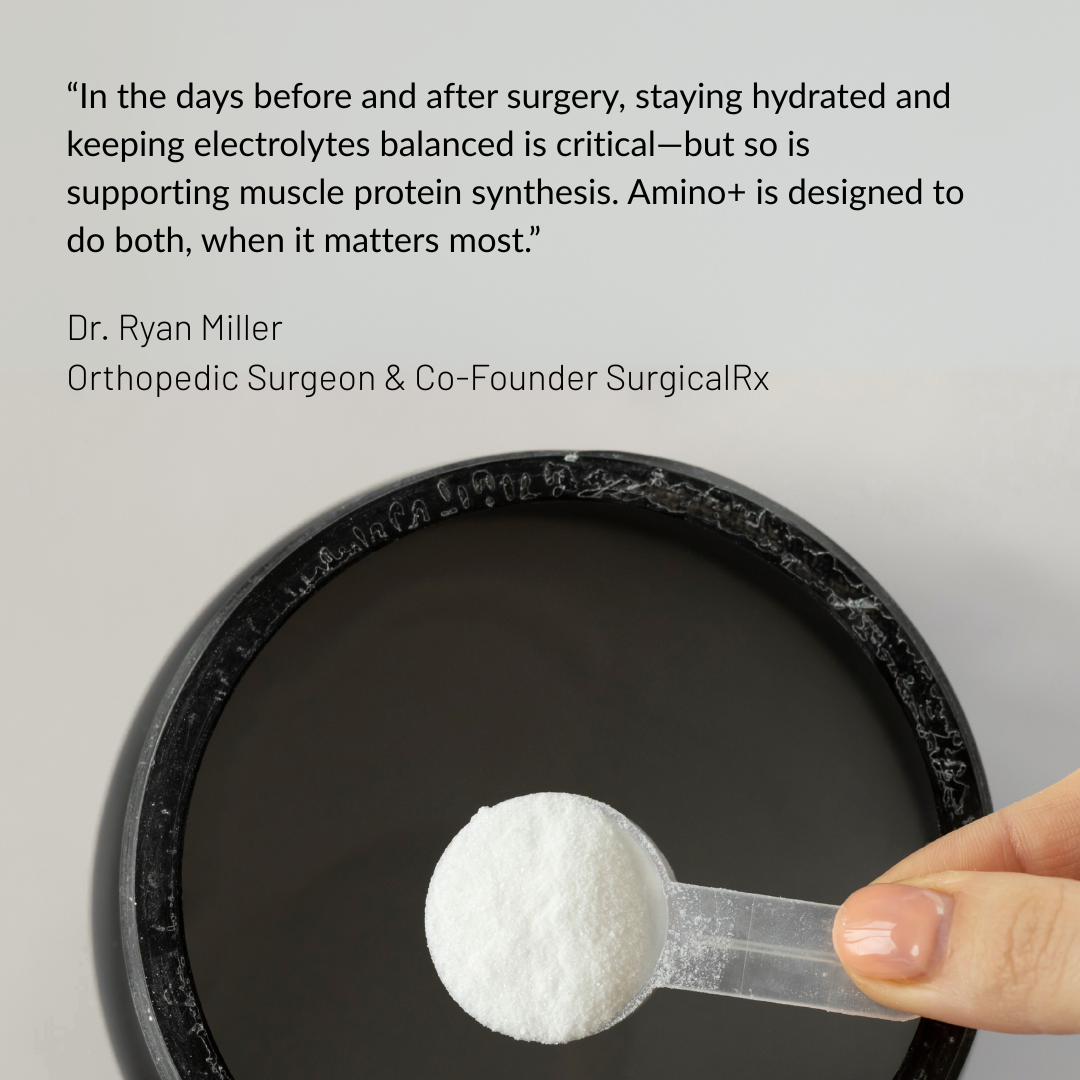 Enhance your surgical outcomes with our Amino Plus+ formula, designed to support optimal hydration and recovery without harsh stimulants or additives. Each serving includes: